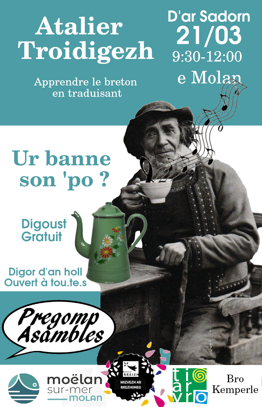 Proposé par l’association Pregomp Asambles – renseignements : 06 83 80 63 74 / degemer@pregomp-molan.bzh