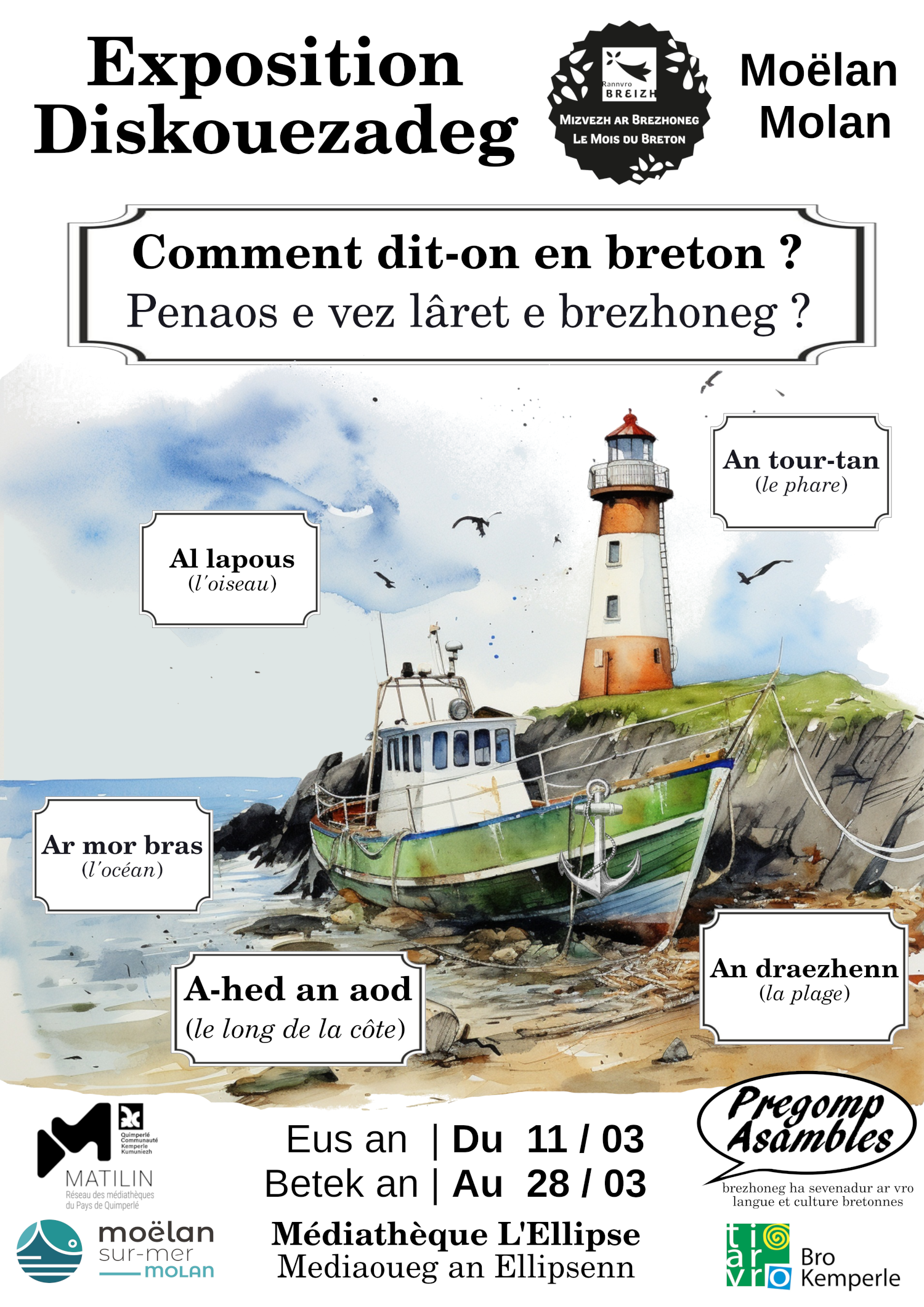 A l’occasion du Mois du breton / Mizvezh ar brezhoneg (thème en « accord » avec l’exposition que nous proposerons « le breton dans les termes maritimes »), nous vous proposons